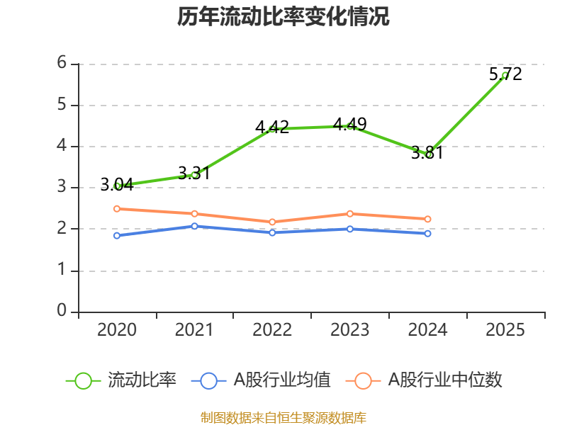2025年尊龙体育网,公司流动比率为5.72,速动比率为3.17。